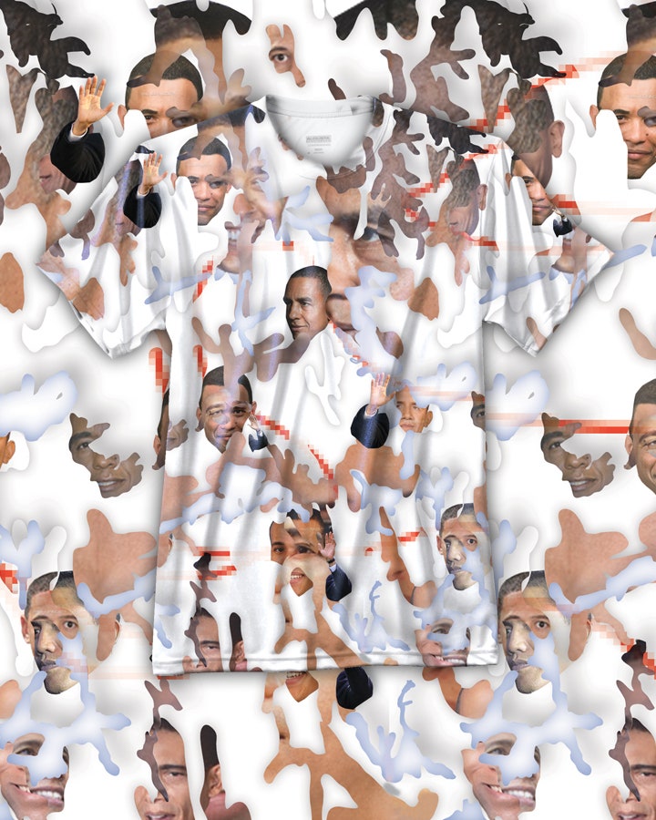 そのような背景の中で,REALFACE GlamouflageはFacebookの顔認識アルゴリズムを混乱させることを目的として制作されました.以下のように,有名人の顔画像をTシャツに貼り付けることで,顔認識アルゴリズムはそれらの画像を顔として認識し,余分なタグを付与します.