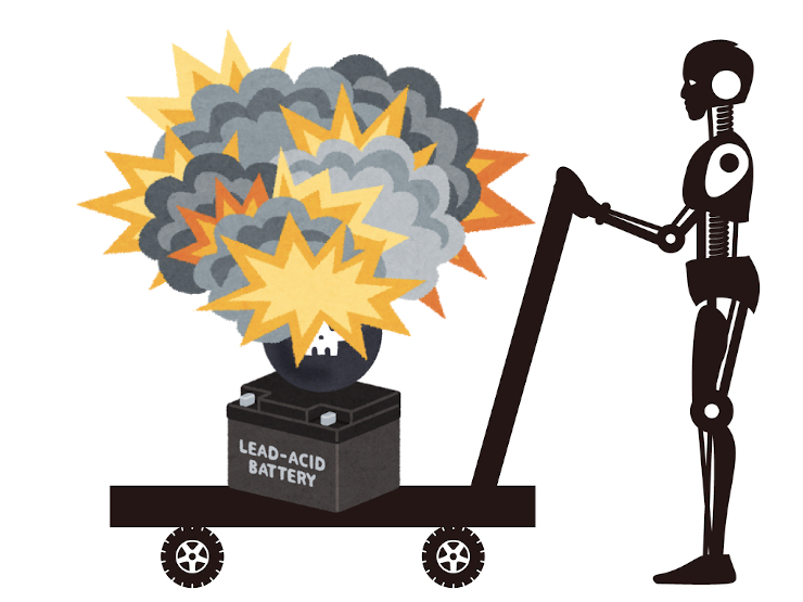 - バッテリー近くで膨大に考えている間に爆発してしまう