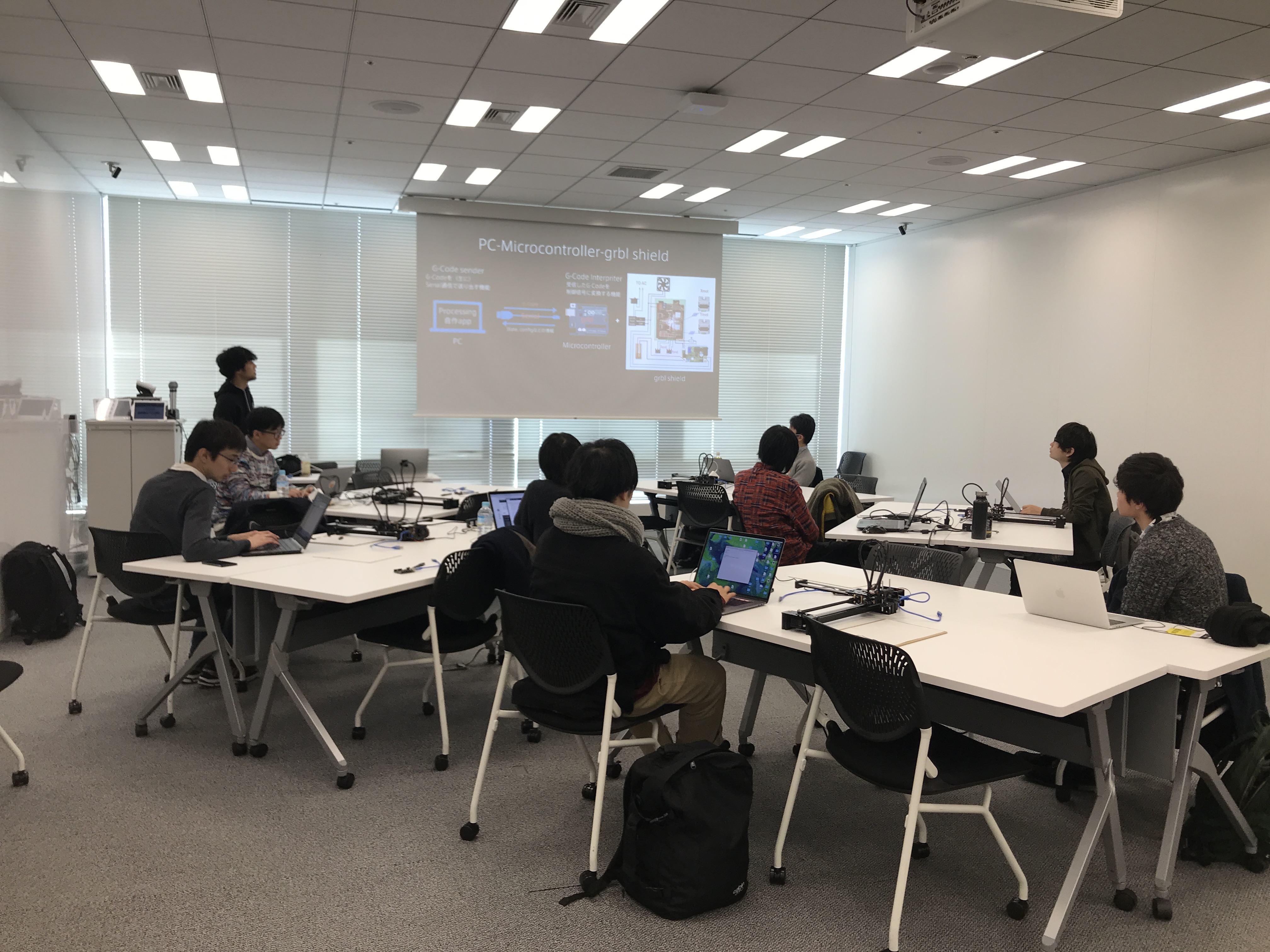 Processing Community Day(PCD) 2019 TokyoというProcessingユーザーの交流イベントの中で行われたWorkshopで,デバイス制御の講師をさせていただきました.このWorkshopでは,プロッターやレーザーカッター,CNCにも使用されているファームウェア”grbl”を用いてペンプロッターを制御し,ディスプレイ外でのドローイングを体験していただきました.実空間の多様な作品制作のきっかけになれば嬉しいです.