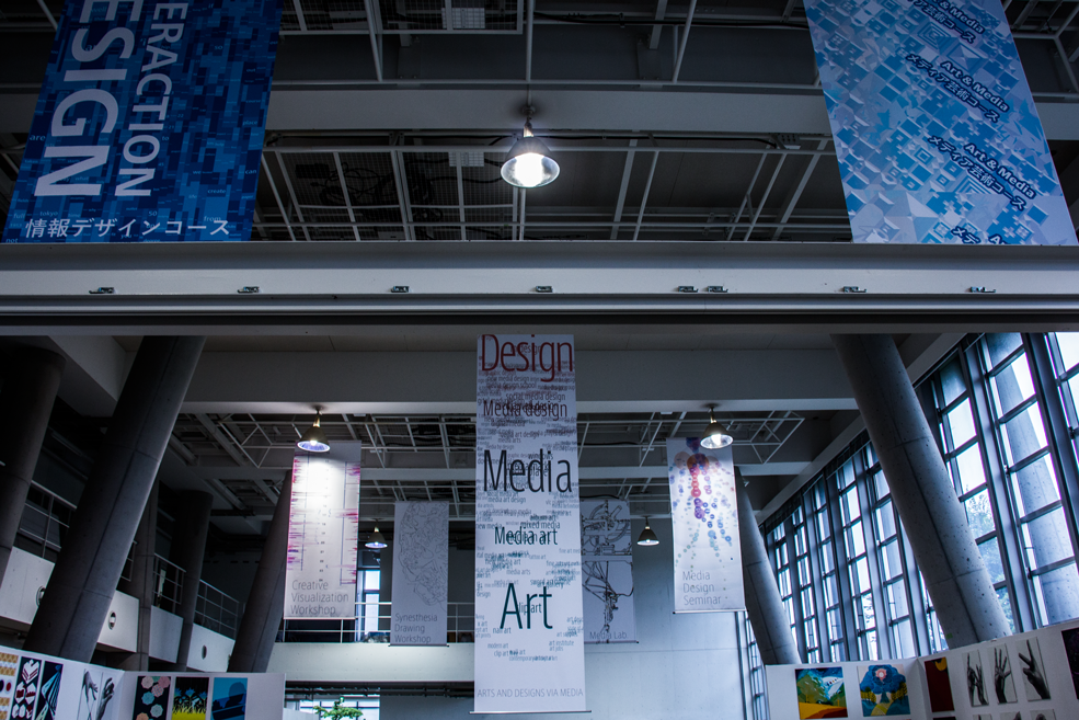 多摩美術大学情報デザイン学科のオープンキャンパス用タペストリ「Design x Media x Art」を制作しました.