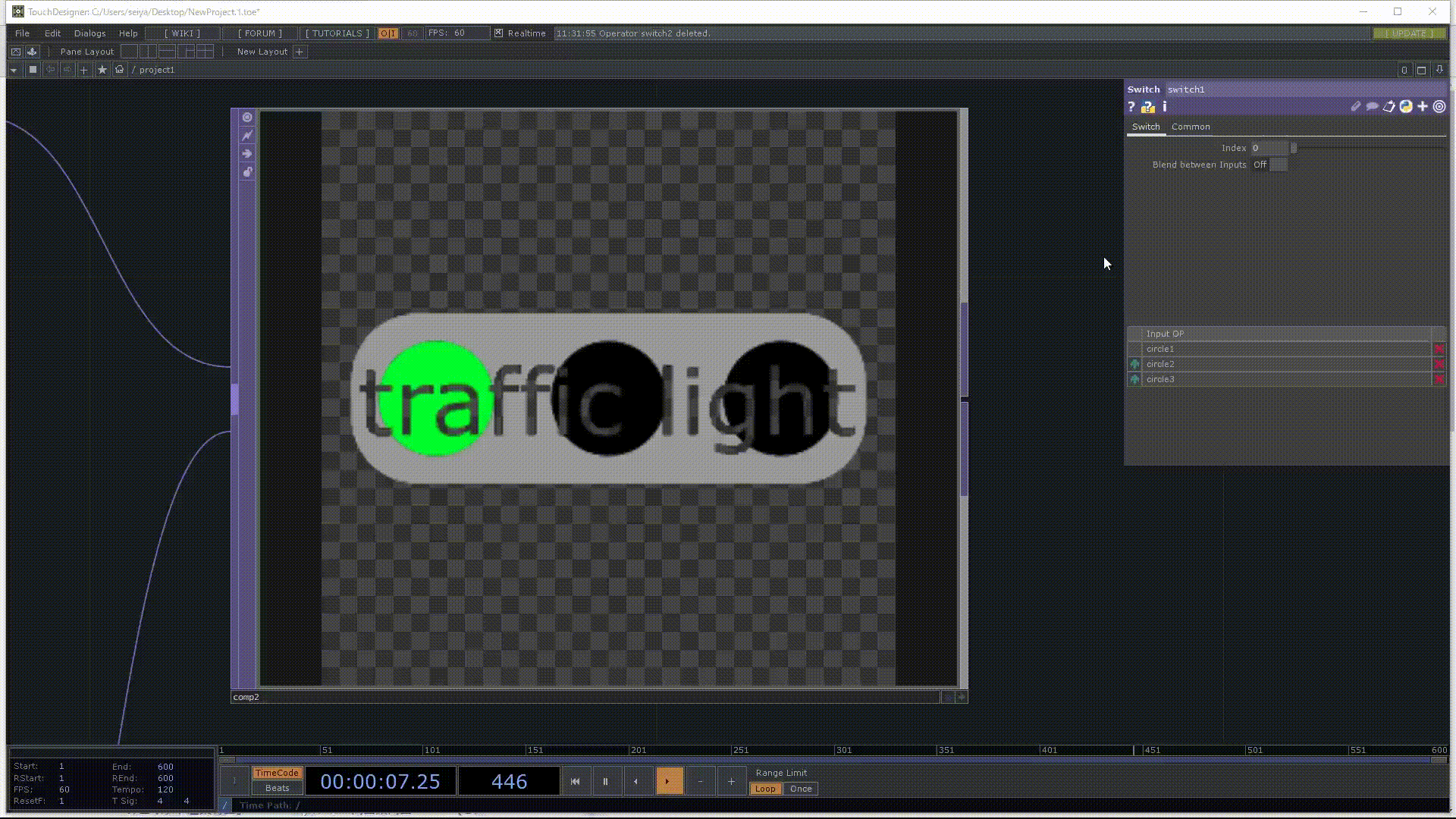 以下のようにSwitch TOPで信号が切り替わるプロジェクトを作成しなさい.