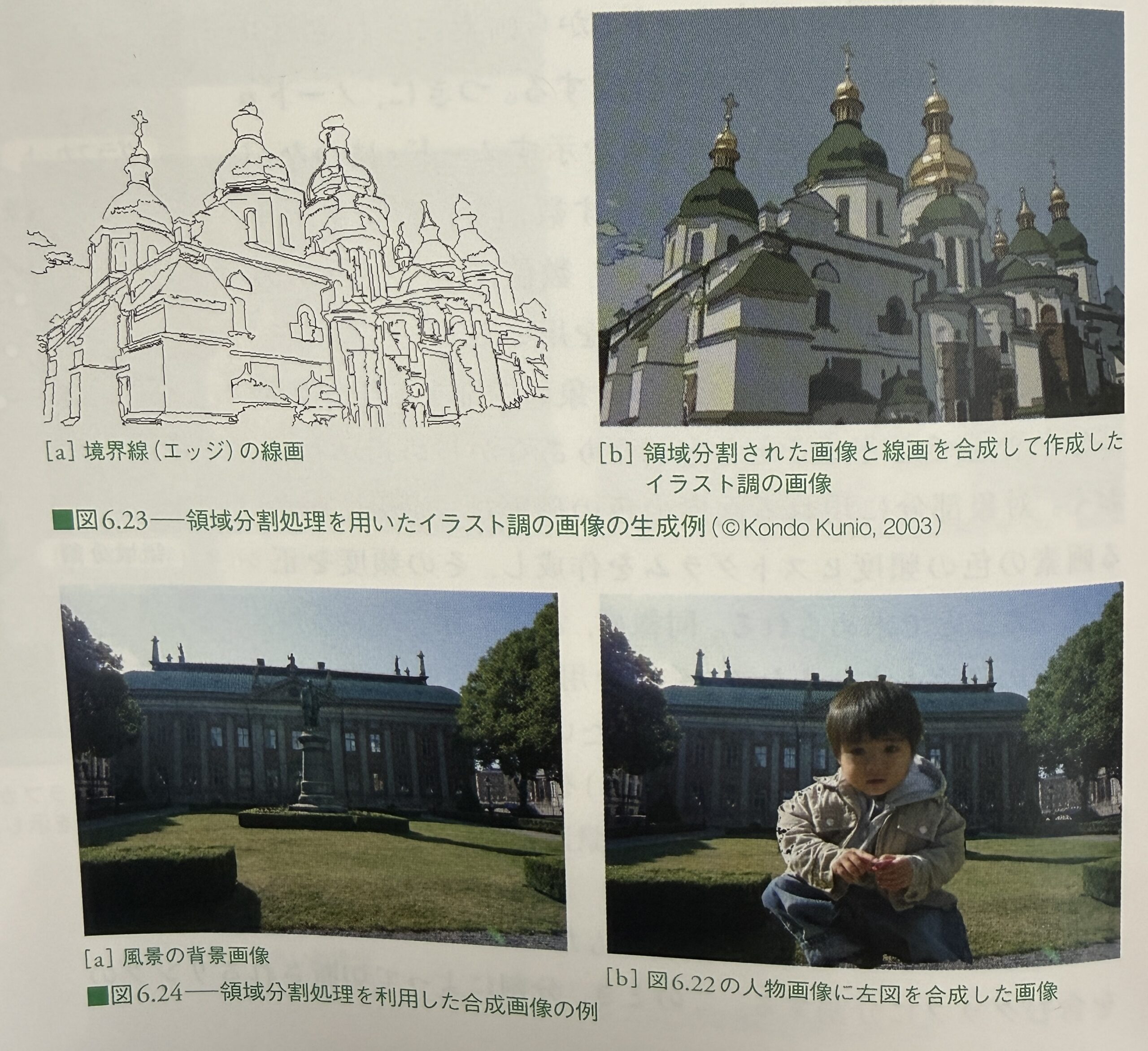 領域分割を施した画像をうまく用いて,エッジを抽出したり,人のいる領域だけを切り取ったりしてシルエットが抽出できたりします