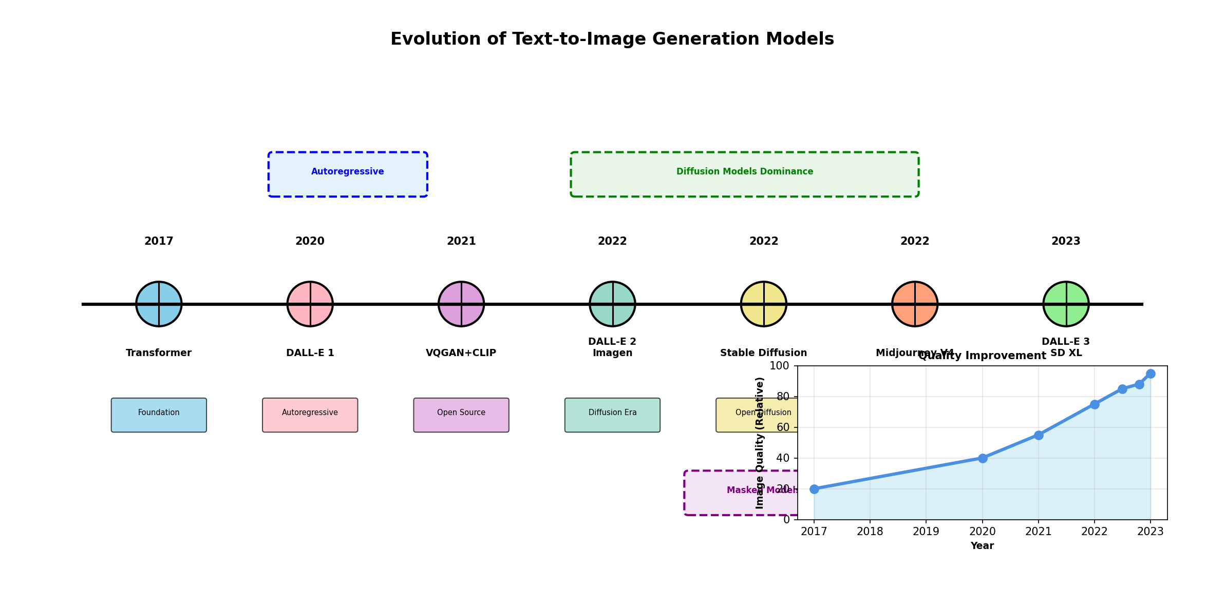 | Autoregressive | 遅い | 良好 | 高い | 高い | DALL-E 1, Parti |
