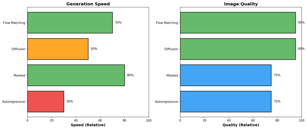 | Masked | 速い | 良好 | 中程度 | 高い | Muse, MaskGIT |