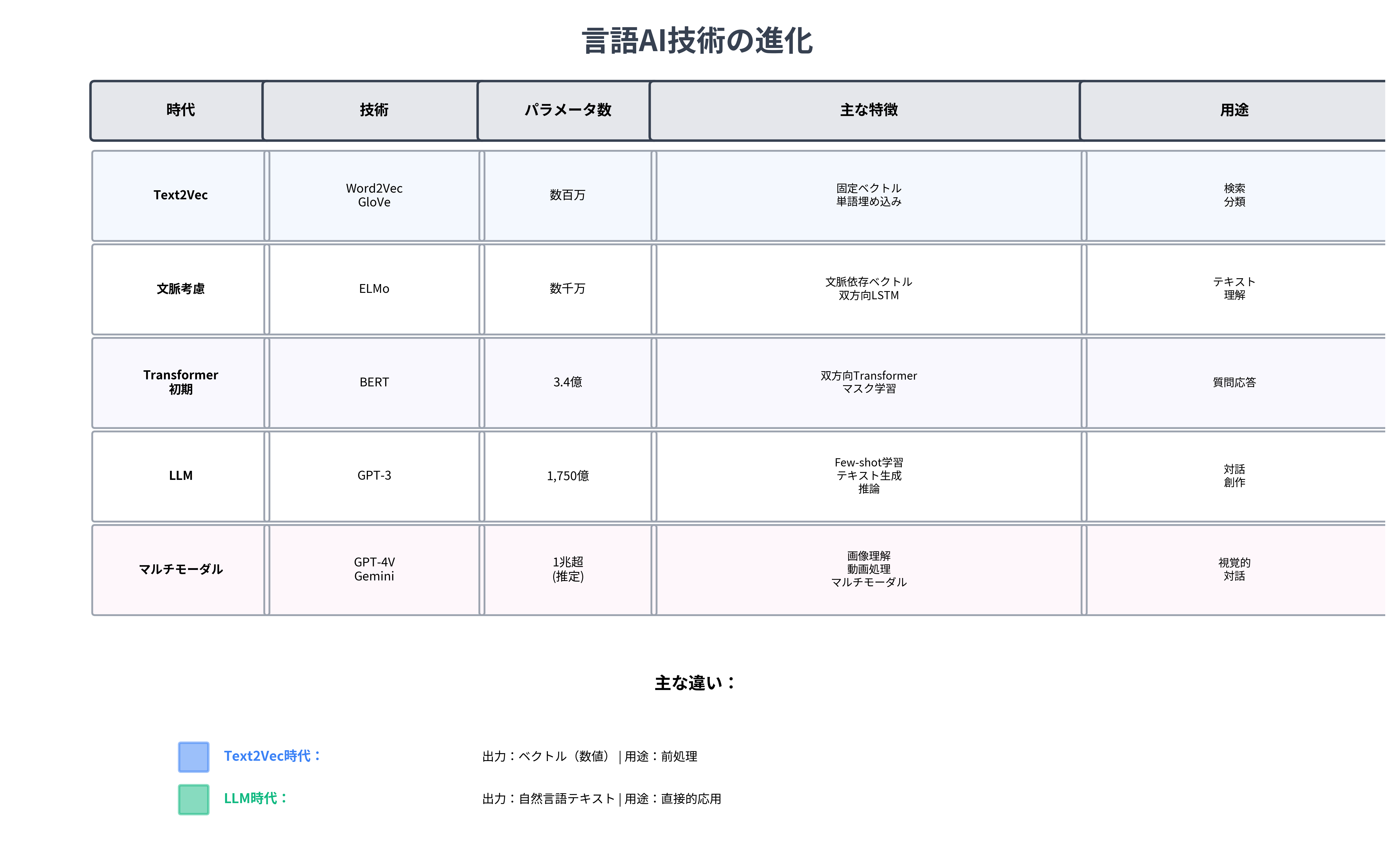 ここで,Word2Vec時代と現在のLLM時代の違いを整理しましょう.