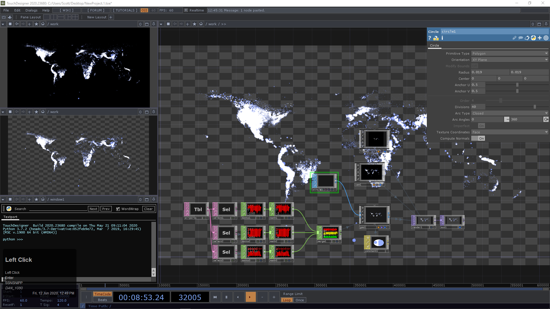 TouchDesignerはビジュアライゼーションと相性が良いです.データに従って図形を複製したり,それらに色や大きさなどを反映することができるためです.実際に見ていきたいと思います.