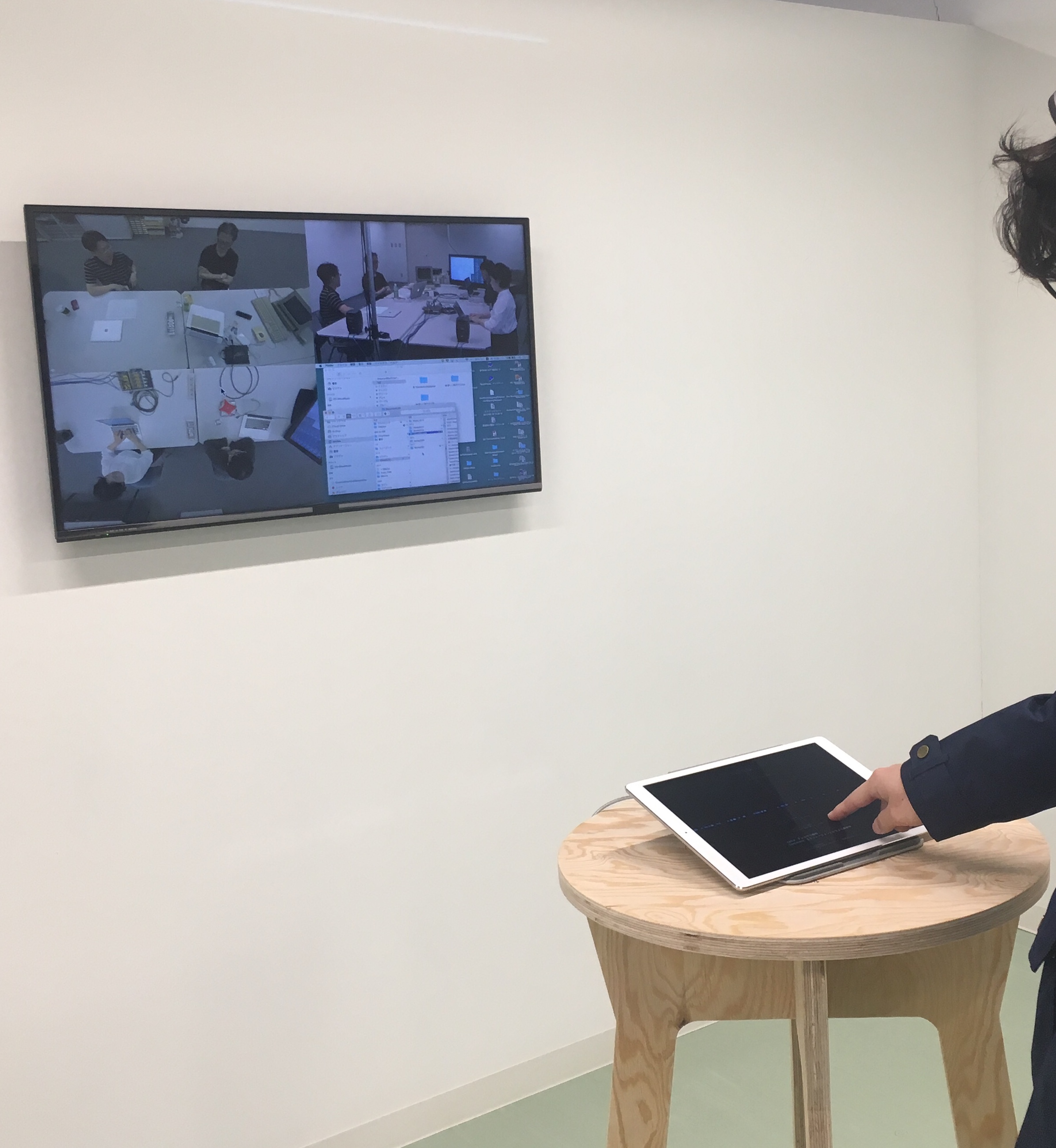 打たれたタグをiPad Proで読み取り,iPad Proがミーティングの記録映像再生中時間軸を追従します.