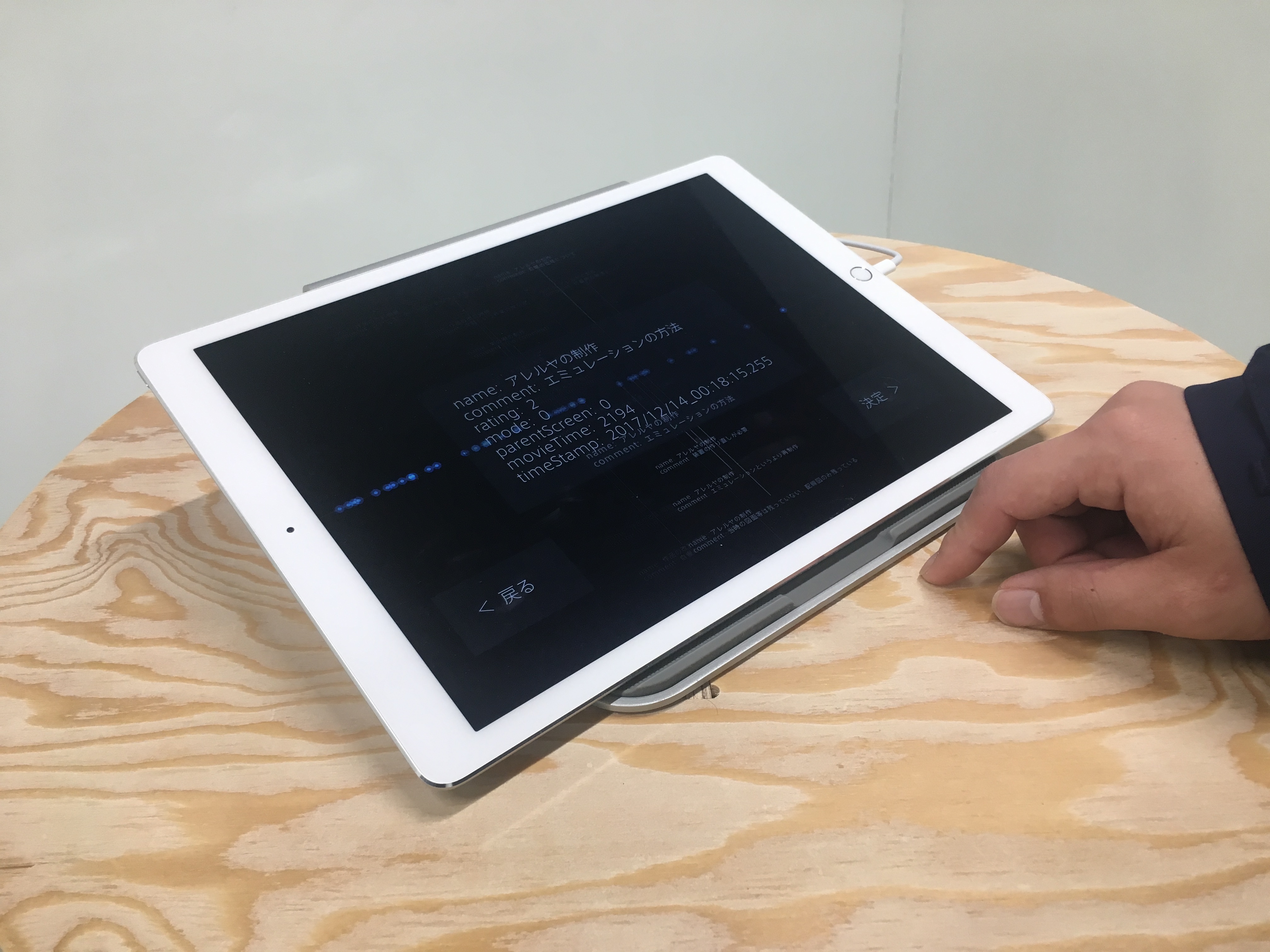 それと同時にiPad側からも時間軸をスワイプで移動し,飛びたい時間を選択すると記録映像の時間が反映される仕組みになっています.